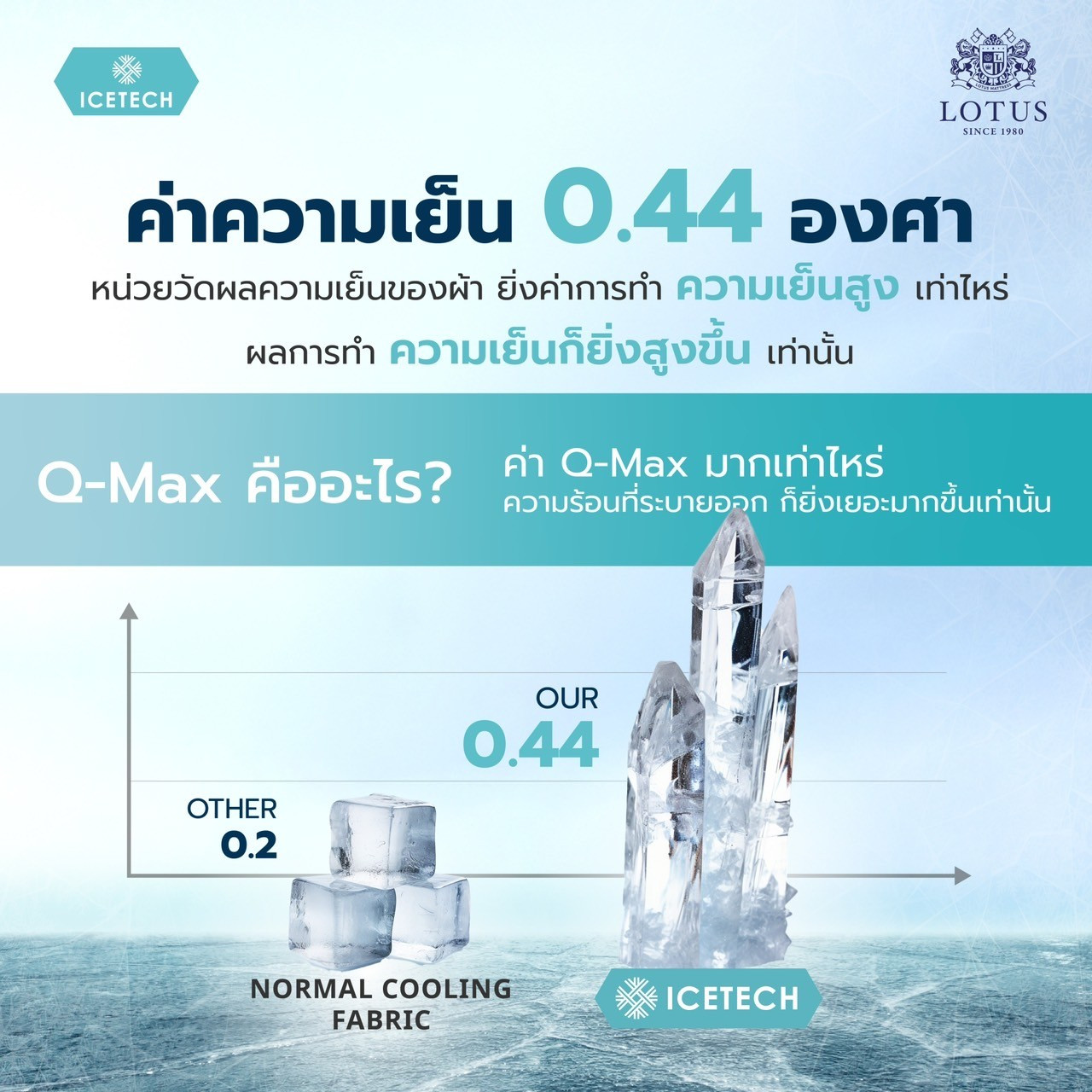 Q-Max Test : ค่าความเย็นของผ้าหุ้ม 0.44 มอบความเย็นที่เหนือกว่าผ้าผิวสัมผัสเย็นทั่วไป