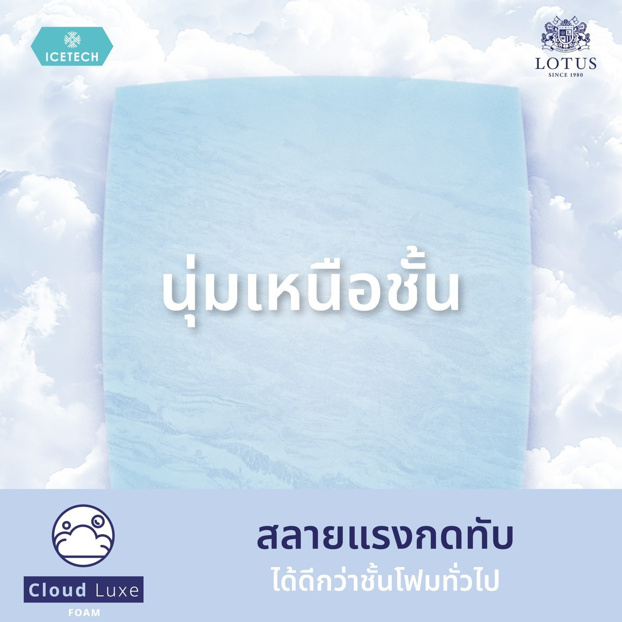 เพิ่มความสบายด้วย CloudLuxe Foam ชั้นโฟมชนิดพิเศษที่ได้รับการออกแบบเนื้อโฟมให้มีความนุ่มมากกว่าโฟมทั่วไป แต่ยังคงไว้ซึ่งความยืดหยุ่นที่เหมาะสมต่อการรองรับสรีระ พร้อมช่วยสลายแรงกดทับได้เต็มประสิทธิภาพ และมอบสัมผัสสบายที่ทำให้คุณได้ผ่อนคลายไปตลอดคืน