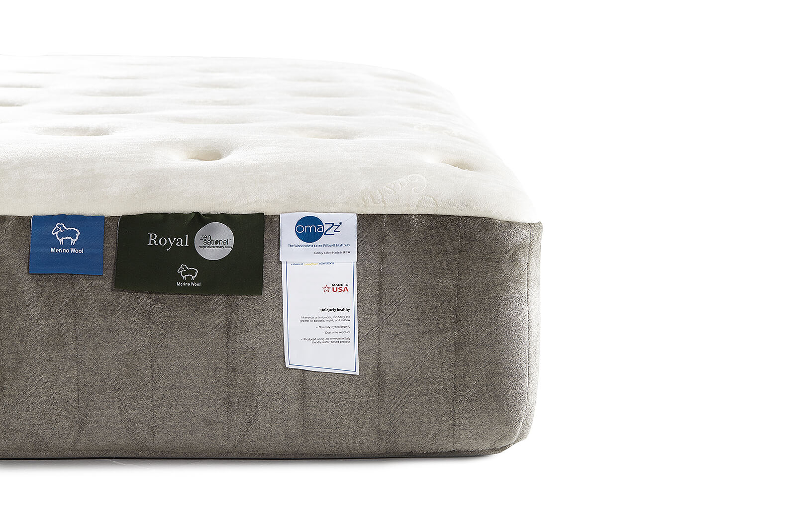 ที่นอน Omazz รุ่น Royal ZensationalTM ผ่านการคิดค้นและพัฒนามาอย่างต่อเนื่อง พิถีพิถันเลือกวัตถุดิบที่ดีที่สุดจากทั่วทุก มุมโลก อาทิ ขนแกะธรรมชาติ (Merino Wool) จากอิตาลี ที่ใช้นำเทคโนโลยีก๊าซออกซิเจนบริสุทธิ์ (Oxygen Treated)